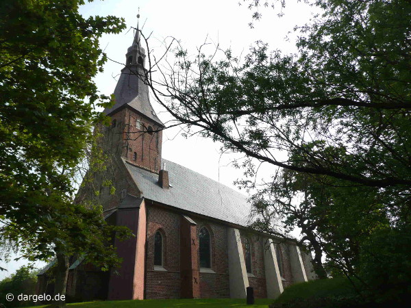 errichtete Westturm. Altar 1523/1654; Taufe 1596, Taufschüssel (Messing) 18.