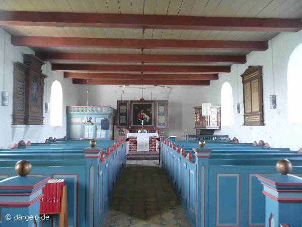 1800, Kanzel vom Anfang des 17. Jahrhunderts, Gestühl von 1805, in Teilen aus